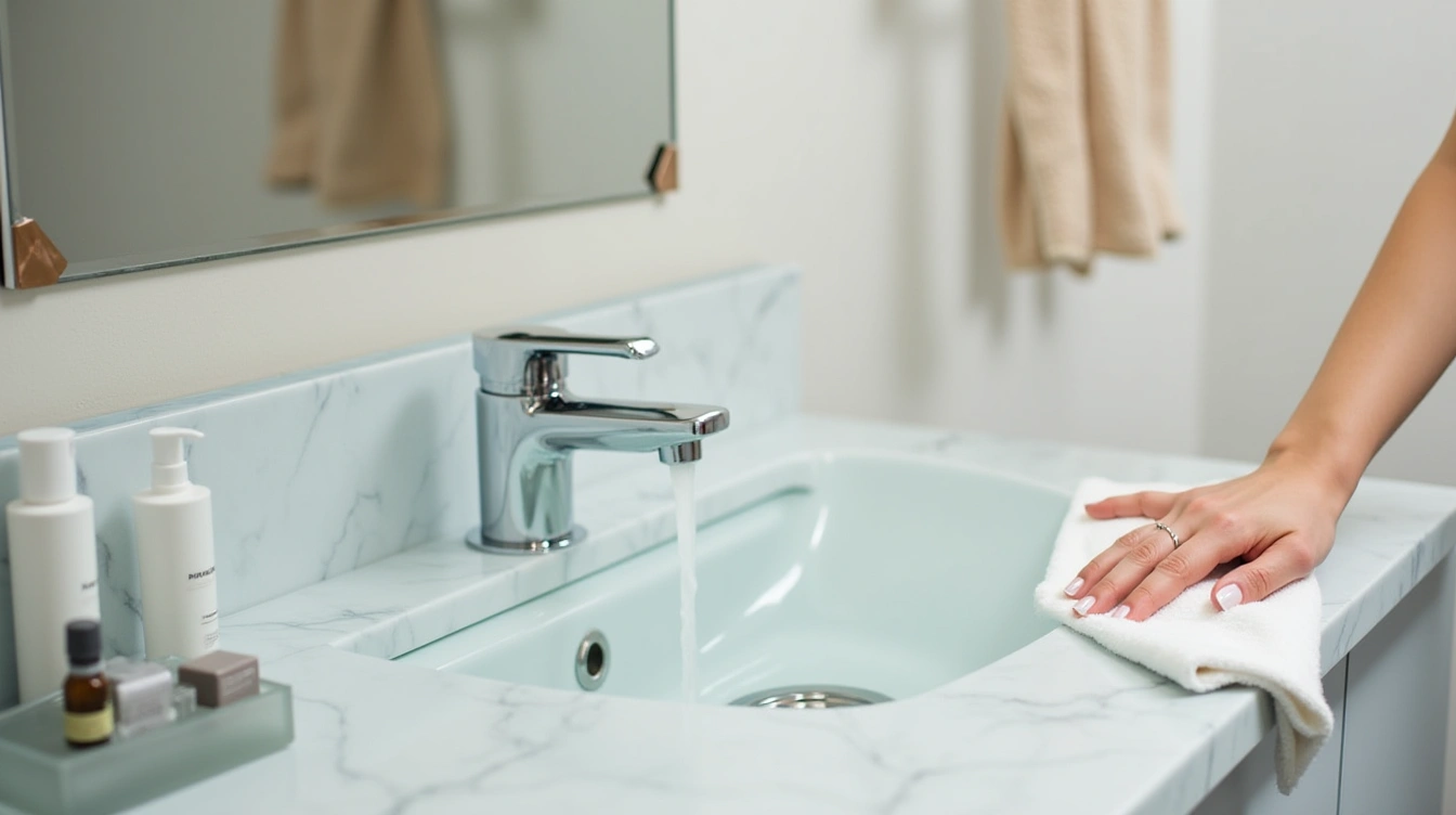 Pour votre salle de bain, les traces de calcaire demandent une approche différente. Ici, la chimie prime avec un détartrant adapté, associé à un temps de contact prolongé. L’eau chaude n’est pas toujours nécessaire, et l’action mécanique reste douce pour préserver vos surfaces délicates comme l’émail ou le chrome.