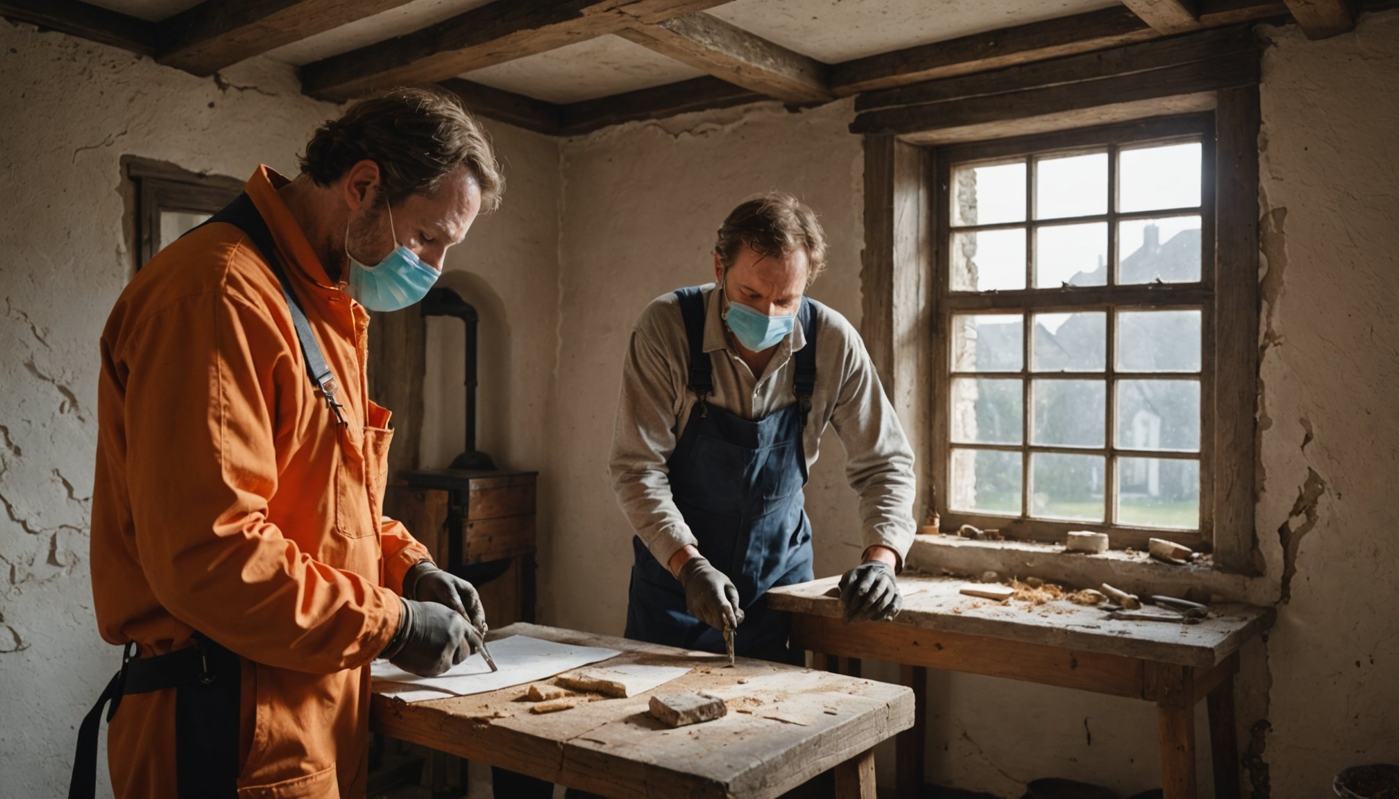 - Traitement chimique ciblé : injection de fongicides dans les bois par forage, pulvérisation sur les maçonneries et application de produits préventifs sur les zones à risque